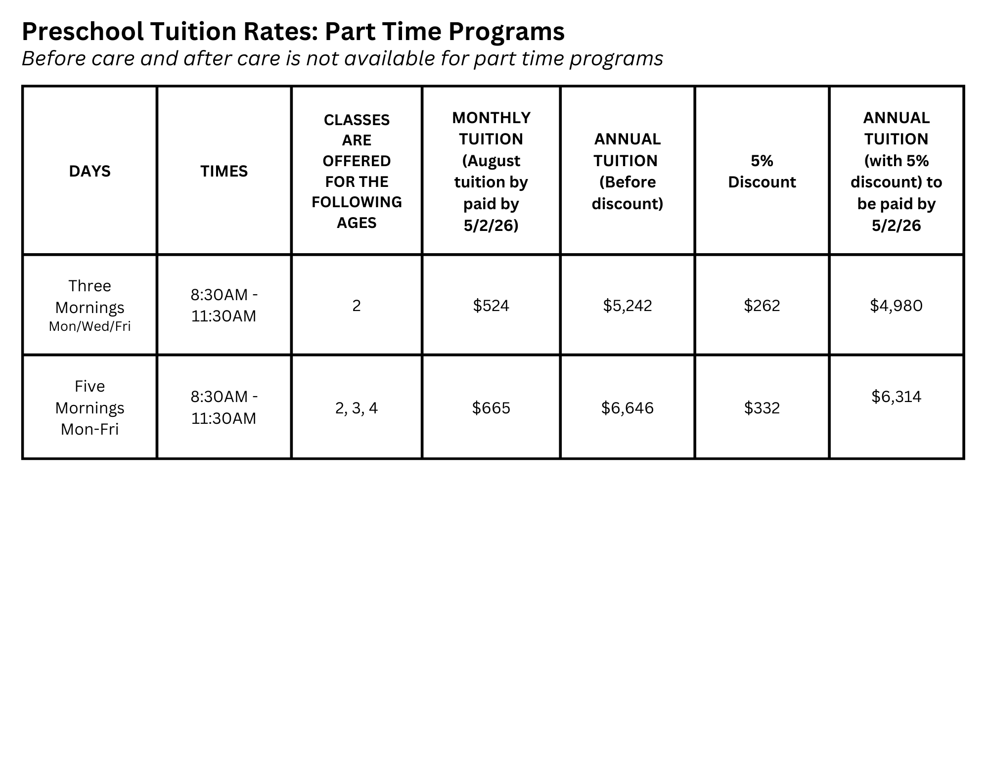 Preschool Tuition Rates